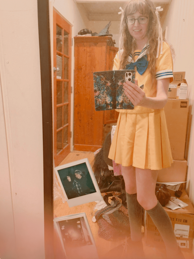 I am noticing some improvement in my outlook, and so are others. I’m a lot more…. positive. My sense of humour is coming back. I don’t see my life as completely bad now. I am grateful for the good things, which I am able to feel more (depression can really blind and numb you to all that). I went to badminton last night and others remembered that I don’t like to be at the end of the court where people sit and chat as I get distracted by the noise. That really touched me. I have been able to do a bit more, and be ok with just small goals. I actually managed to do a lot of work on my book last weekend and have now caught up on all the weeks’ edits I was behind on. My self-esteem is improving and I’m feeling different within myself. I am wearing nicer clothes, such as this outfit which came from Japan, and am not covering up so much anymore: