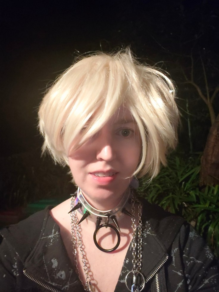 I am approaching my period, which always makes me particularly unwell. I started getting headaches again, after a few weeks where they weren’t so bad. I’ve also been feeling breathless, light headed, and nauseous. My mood and identity have been swinging all over the place. I’ve felt a more masculine energy moving through me, leading me to dress differently and change my pronouns for a bit. Here is one of the photos I took during that time.